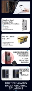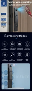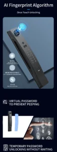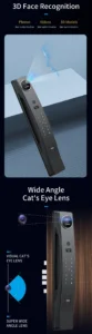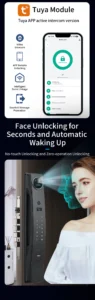 | Unlock Methods | Face Recognition, Fingerprint, Password, Card, Mechanical Key, Tuya App |